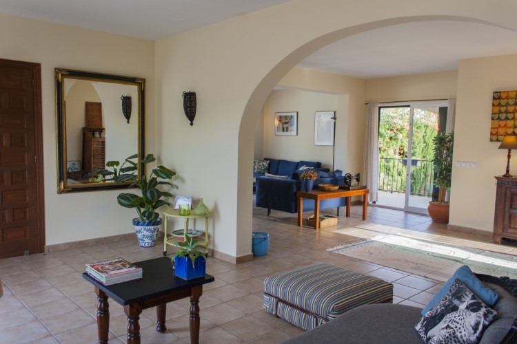Het zwembad (8x4m) heeft een Romeinse inlooptrap en is omgeven met een mooi begroeide tuin met terrassen. De terrassen, met prachtige uitzichten op de heuvelruggen van de Sierra Bernia, Sierra Aitaina en Puig Campana, bevinden zich overdekt aan het huis, rond het zwembad en er is een dakterras met daar vandaan zeezicht.
